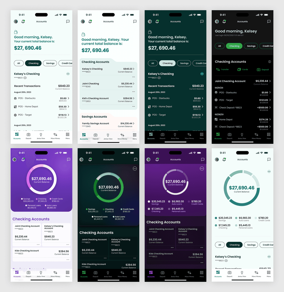 The previous design system Jenius used was a web-based kit that was adapted for native mobile use. While this did technically work, many native components and patterns were ignored, causing a less than optimal user experience. Also, there was no dark mode mapping in the design color system. Lastly, many believed the original UI style felt dated, and not as elegant as it needed to be for a digital-only bank.