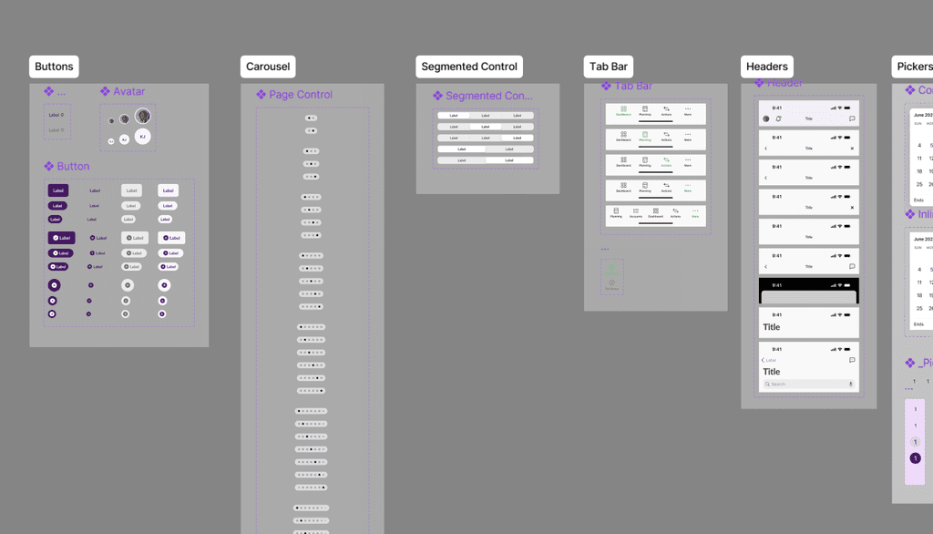 One of the biggest issues with the previous design system was its color system. The mappings were not set up in a way as to where the colors could logically scale across all components, so Devs ended up hard coding colors in ways that varied from component to component. With the new system I created mappings for both light and dark modes using Figma tokens. We created one color palette that could be shared between iOS & Web, and a second for Android with mappings specific to Material 3.