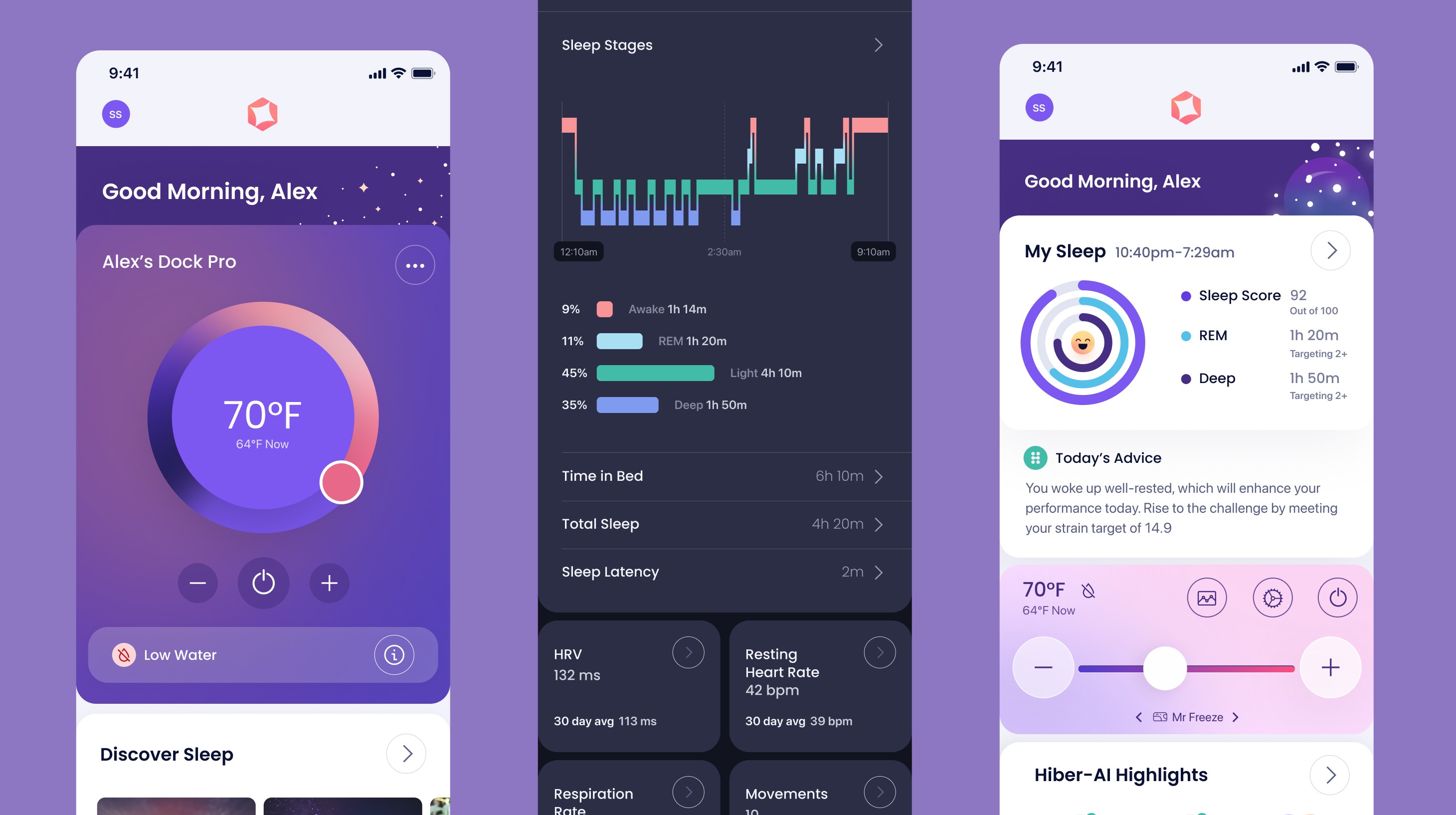 Native iOS & Android app that controls temperature regulation hardware while you sleep. The app connects to both a cloud service and propitiatory hardware via WiFi. In addition to temperature regulation, the app also handled sleep tracking, and delivered daily insights and coaching using "Hiber-AI" to help customers achieve better rest.