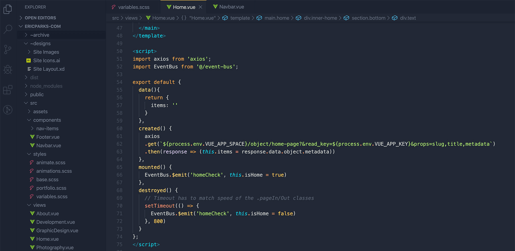 My former portfolio site, built using Nuxt3. The current site you're viewing is built using Framer.com. However, each time I want to learn a new technology I build a version of my personal website using whatever it is I want to learn. The previous iteration of this site was built in VueJS, then refactored into the Nuxt3 framework. The Nuxt3 headless frontend pulls JSON content from a CosmicJS API.